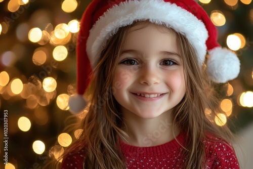 children, girl, christmas, smile, holiday, festive, tree, decoration, winter, joyful, happy, cheerful, portrait, celebration, light, bokeh, holiday season, december, tradition, red, white, cosy, warm, adorable, cute, curly hair, innocence, youth, family, love, childhood, closeup, merry, magical, seasonal, sweater, soft, glowing, beautiful, wonder, expression, face, generative, ai