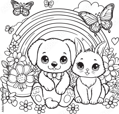 cartoon, colouring, illustration, drawing, vector, animal, children, fairy tale, cat, funny, vignetting, bear, outline, children, art, clip art, dog, fun, set, forest, black, fairy tale, childhood, book