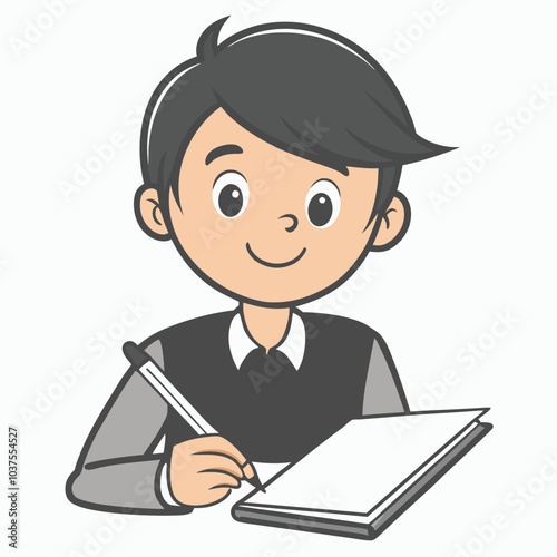 cartoon, book, boy, illustration, vector, reading, children, children, computer, student, woman, school, laptop, education, people, person, study, read, business, learning, working, table, studying, smile, work