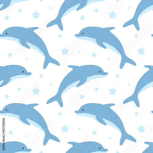 Childish seamless pattern with dolphins.