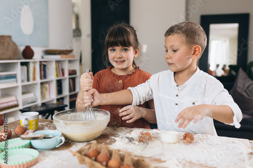 baking, prepare, dough, flour, egg, mother, children, children, brother, sister, family, eltern, caucasian, adult, togetherness, satisfaction, enjoyment, education, harmony, fun, indoor, home, happy, smiling, woman, cooking, kitchen, people, daughter, cake, childhood, girl, young, helping, lifestyle, preparation, bake, household, parenting, making, teamwork, casual attire, day, motherhood, domestic, food, helper