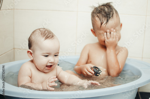 bathe, baby, shower, fun, people, guy, attitude, hygiene, plastic, basin, junior, senior, care, boy, girl, sister, younger, family, love, together, happiness, caucasian, language, watch, clean, man, portrait, health, background, white, joy, little, eye, children, youth, bathroom, cheerful, cute, newborn, curly, laundered, healthy, washbasin