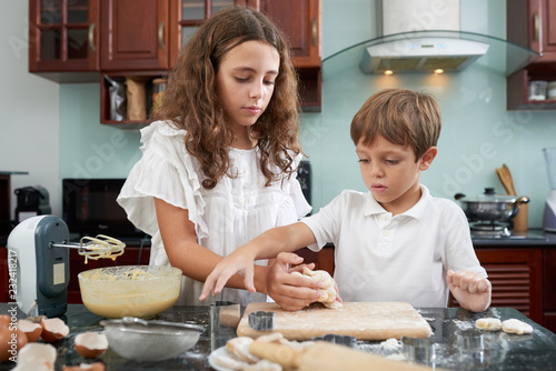 boy, children, children, cooking, cookie, dough, dessert, preparing, pastry, childhood, culinary, food, sweet, biscuit, fun, brother, sister, raw, cutting, helping, teaching, kneading, baking, making, mixer