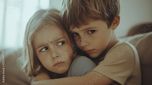Children playing together, one child comforting another who looks sad, showing early signs of empathy,