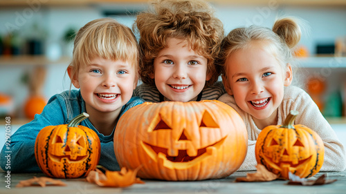 children with pumpkins