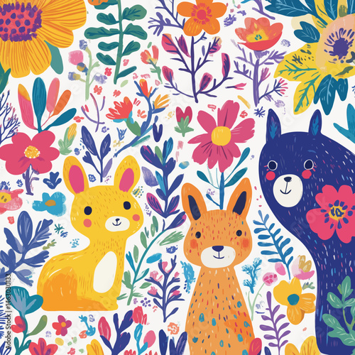 animal, illustration, watercolor, children, playful, drawing, rabbit, bear, fox, colourful, flower, nature, art, design, cute, adorable, whimsical, creative, character, vibrant, bloom, cartoon, joy, pattern, artwork, happy, foliage, wildlife, spring, pet, garden, fantastic, cheerful, happiness, beauty, decorative, children, fantasy, imaginative, bright, joyful, fun, animal, wild, head, children, baby, funny