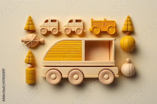 Children's wooden toys, minimalist. Generative AI
