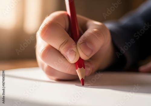 Child's Hand Drawing with Red Pencil