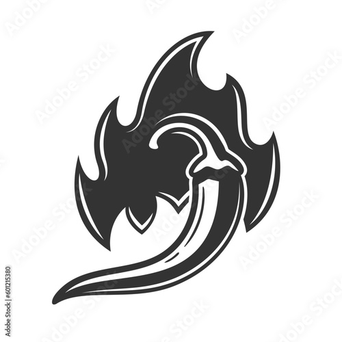Chili pepper and fire isolated on white background. Vector illustration