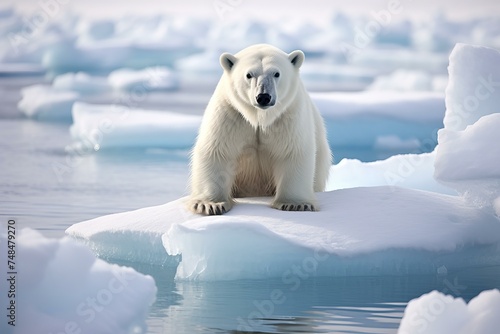 Chilly Polar bear ice. Snow winter white. Generate Ai