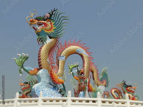 dragon, china, temple, sculpture, statue, asia, religion, art, animal, culture, siam, ancient, decoration, sky, architecture, gold, roof, blue, thai, oriental, traditional, tradition, symbol, colourful, old