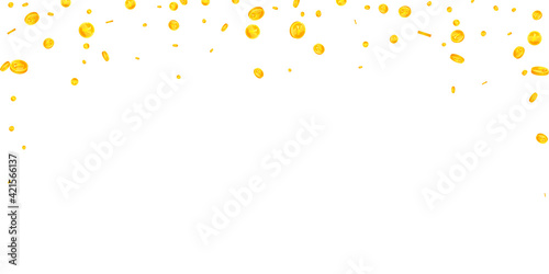 Chinese yuan coins falling. Impressive scattered CNY coins. China money. Interesting jackpot, wealth or success concept. Vector illustration.