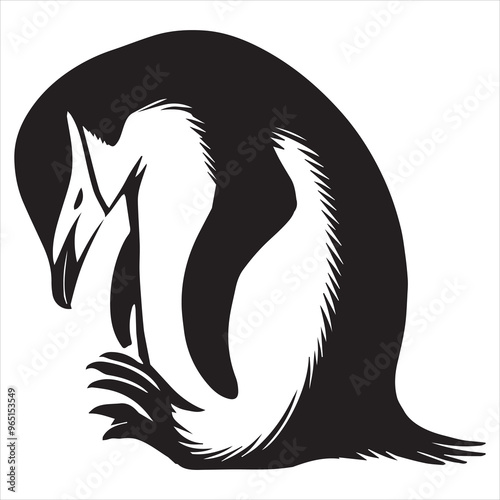 Chinstrap Penguin silhouette - Penguin Bird Vector Illustration in black and white