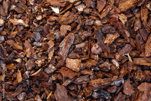 Chips of the bark of a tree close-up as a background.