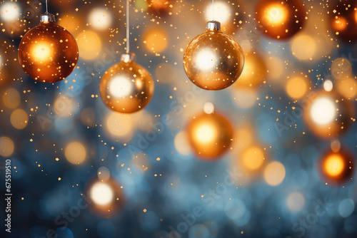 chistmast abstract blue soft bright background with golden globes and copy space for text messages. AI generated