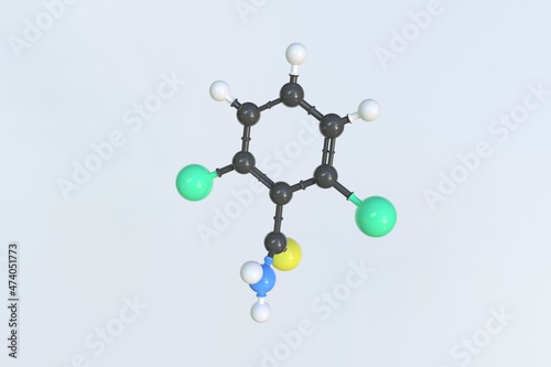 Chlorthiamide molecule made with balls, scientific molecular model. 3D rendering