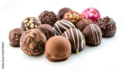 Chocolate candies collection. Beautiful Belgian truffles isolated on white background