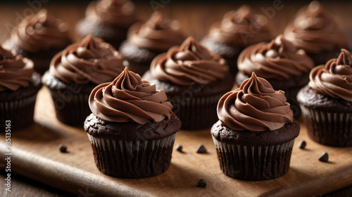 cupcake, chocolate, frosting, dessert, baking, sweet, chocolate chips, rich, decadent, moist, delicious, treat, swirl, icing, pastry, bakery, homemade, dark chocolate, snack, indulgent, glossy, sweet tooth, baked goods, closeup, cocoa, food, cake, chocolate, epicure, baked, pastry chef, party, celebration, soft focus