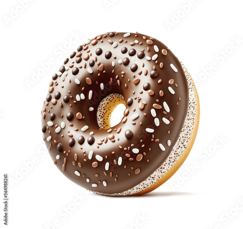 Chocolate donut isolated on white background, generative ai.