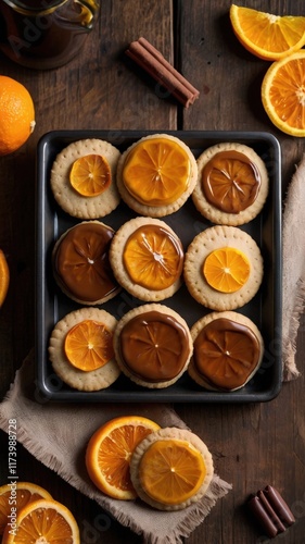Chocolate Glazed Shortbread Cookies with Caramelized Orange Slices