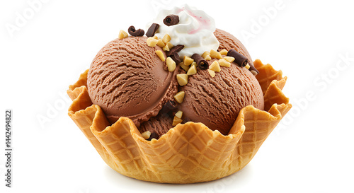 Chocolate Ice Cream in Waffle Bowl with Toppings