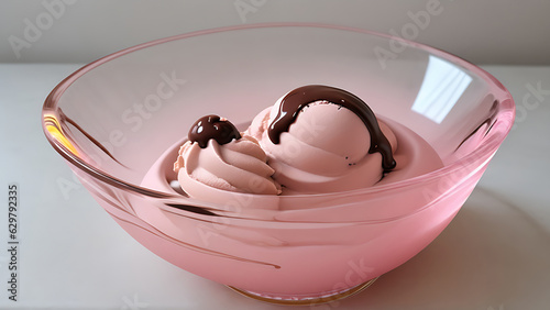 Chocolate ice cream in yellow glass bowl