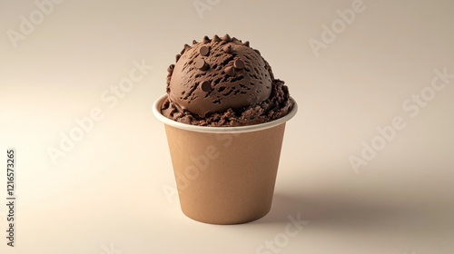 Chocolate ice cream scoop in paper cup