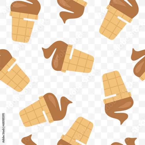 Chocolate ice cream seamless vector background. Ice cream in waffle cup pattern