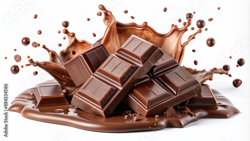 Chocolate pieces and splash isolated on transparent background Remove png, Clipping Path, pen tool