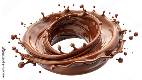 Chocolate splash isolated on transparent background, a dynamic swirl of liquid cocoa, perfect for dessert or a sweet drink, delicious and smooth