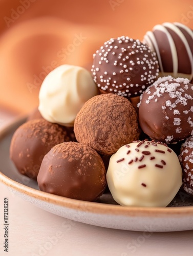 chocolate, truffle, favor, powdered, sugar, sprinkle, stack, studio, setting, decadent, indulgent, sweet, dessert, confection, rich, creamy, candy, treat, luxury, dark, milk, white, cocoa, smooth, epicure, sweet tooth, bite, round, handcraft, coating, sugary, delicacy, festive, savoury, elegant, fine, melt, texture, delicious, tasty, praline, truffle, sugared-almond