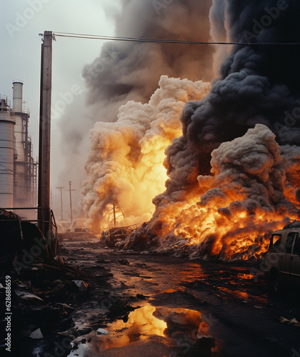 factory, pollution, smoke, smog, air pollution, industrial, environmental, emission, atmosphere, environmental impact, industry, climate change, global warming, toxic, contamination, fume, toxicity, industrialization, hazardous, contaminated, ai, generative, sunset, plant, sky, refinery, power, night, oil, gas, chimney, tower, environment