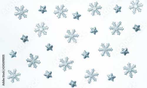christmas, blue, top, table, view, decoration, background, christmas, snow, confetti, card, flat, white, winter, lay, 2019, up high, art, ball, border, bright, colours, composition, concept, creative, december, decor, design, desk, event