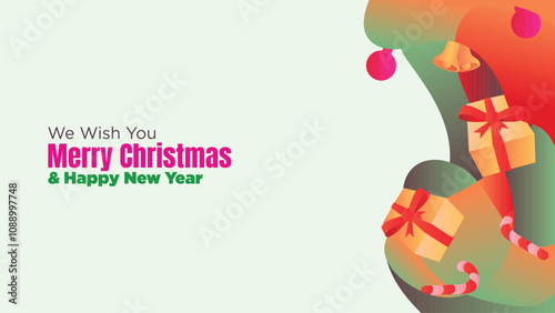 Christmas and New Year Editable Web Template with Abstract Fluid Background. abstract fluid christmas background with gift box and ornamental vector illustration