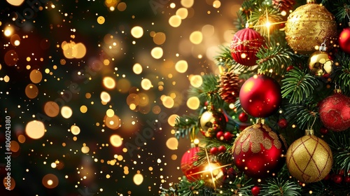 christmas, background, ornament, holiday, year, new, decoration, greeting, decorative, christmas, celebrate, merry, celebration, festive, 2024, 2025, banner, poster, tree, ball, eve, sparkle, winter, light, card, gold, party, design, new year, happy, fir, christmas tree, season, tree branch, green, star, pine, red, december, gift