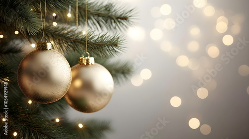 christmas, background, new, year, festive, greeting, gift, fir, invitation, christmas bauble, gold, elegant, luxury, white, beige, decor, decoration, design, christmas, banner, place, space, text, copy space, blur, glistering, garland, horizontal, frame, tree, light, sparkle, shiny, natural, light, template, flier, sale, winter, december, seasonal, discount, stylish, distance, depth