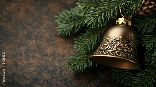 christmas, bell, decoration, holiday, celebration, bell, gold, tree, ribbon, ornament, christmas, winter, bow, jingle, season, object, shiny, red, december, merry, gold, year, new, tree branch, gift