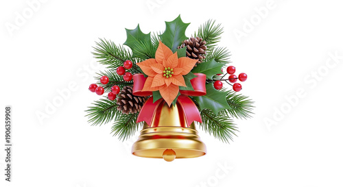 Christmas Bell with Poinsettia, Holly, Pine, and Berries