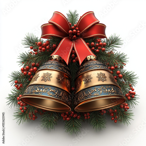 christmas bells with red ribbon