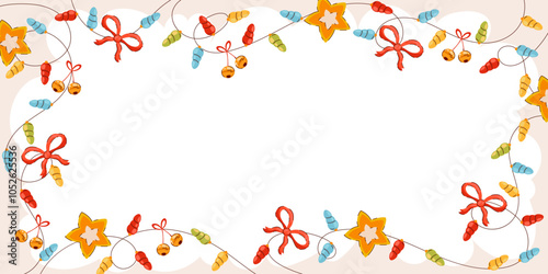 border, background, christmas, garland, festive, frame, holiday, globe, decoration, bell, star, colourful, vector, celebration, winter, joy, season, cheer, merry, bright, ribbon, decor, invitation, template, spirit, illustration, ornament, pattern, joyful, element, cheerful, winter holiday, seasonal