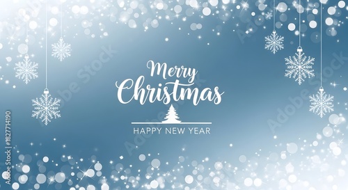 Christmas Card Design with Snowflakes and Merry Christmas Greetings