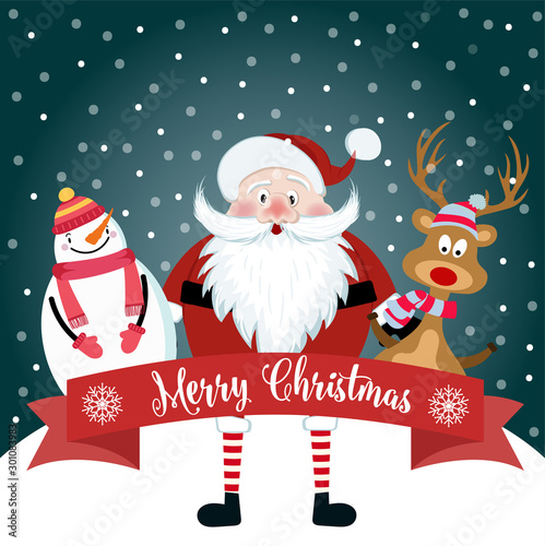 snowman, reindeer, christmas, holiday, celebration, winter, christmas, red, happy, vector, december, merry, design, cartoon, illustration, eve, season, greeting, white, snow, card, banner, festive, cute, seasonal, person, costume, colourful, traditional, smile, fun, paper, colours, snowflake, funny, people, beard, greeting card, christmas card, merry christmas, christmas, santa