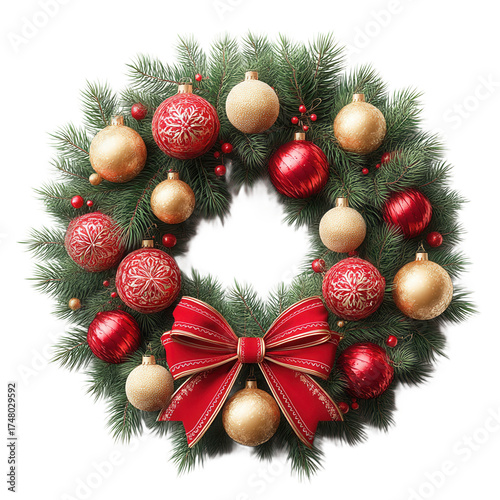 christmas decoration, christmas, decoration, holiday, chaplet, ornament, pine, festive, red, gold, green, ribbon, seasonal, nature, celebration, design, garland, traditional, beauty, style, elegant, joy, cheer, craft, hand-made, decor, luxury, shiny, bauble, adornment, winter, greenery, arrangement, floral, vibrant, attractive, colourful, classic, cheerful, embellishment, elegance, artistry