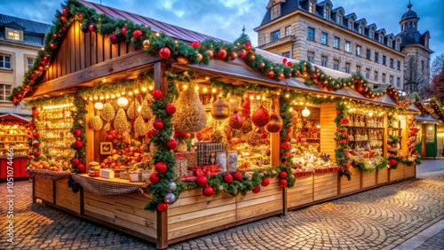 christmas, decoration, market, stall, berlin, german, holiday, ornament, festive, light, snowflake, garland, bauble, shopping, winter, seasonal, traditional, craft, hand-made, red, white, european, culture, celebration, twinkling