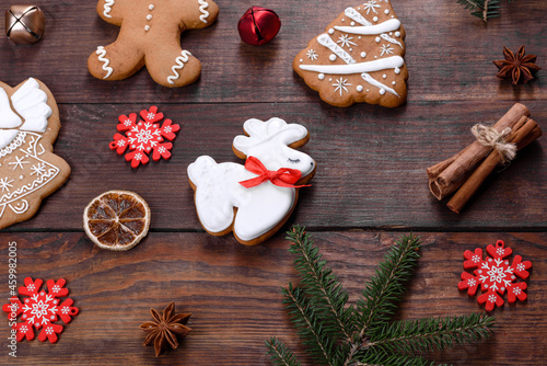 christmas, new year, gingerbread, winter, festive, food, traditional, decoration, holiday, dessert, sweet, icing, christmas, homemade, brown, decorated, background, cake, cookie, ginger, biscuit, wooden, tree, cookie, table, cinnamon, wood, nobody, snowflake, seasonal, cooking, gift, hand-made, star, baked, celebration, man, baking, white, season, spice