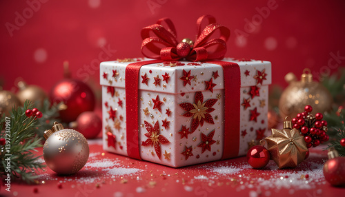 christmas, gift, box, present, ribbon, decoration, holiday, bow, celebration, christmas, birthday, gold, gift, tree, red, surprise, winter, festive, gold, isolated, year, new, package, box, ornament