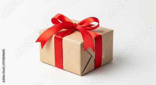 christmas, gift, box, present, ribbon, bow, holiday, festive, cardboard box, minimal, seasonal, isolated, studio, decoration, commercial, celebration