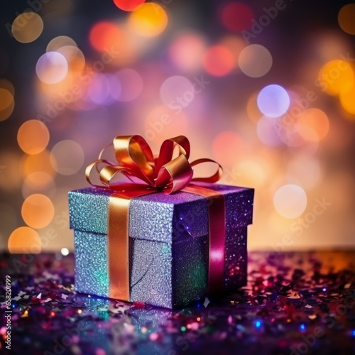 Christmas gift boxes with holiday, defocused background