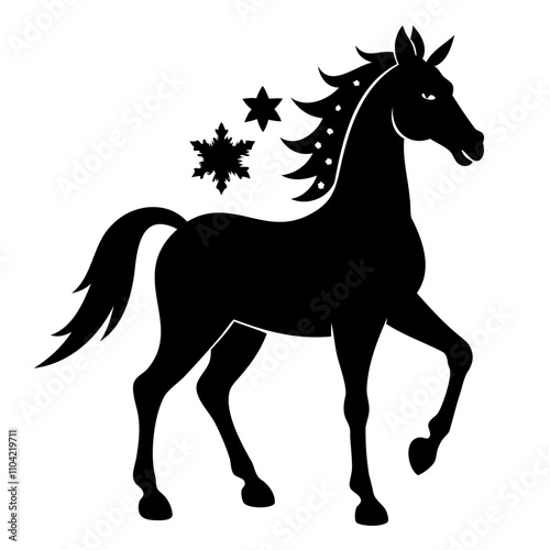 Christmas Horse Black Silhouette vector illustration isolated on a transparent background