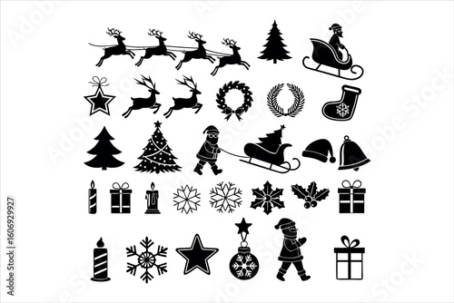 christmas, icon, holiday, decoration, set, symbol, winter, vector, celebration, christmas, gift, tree, santa, snow, merry, design, illustration, ornament, reindeer, star, new, year, snowflake, bell, hat, festive, graphic, red, green, silhouette, cartoon, black, white, signs, joy, symbol, art, background, seasonal, flat, vintage, collection, greeting, cosy, traditional, magic, happy, style, sparkle